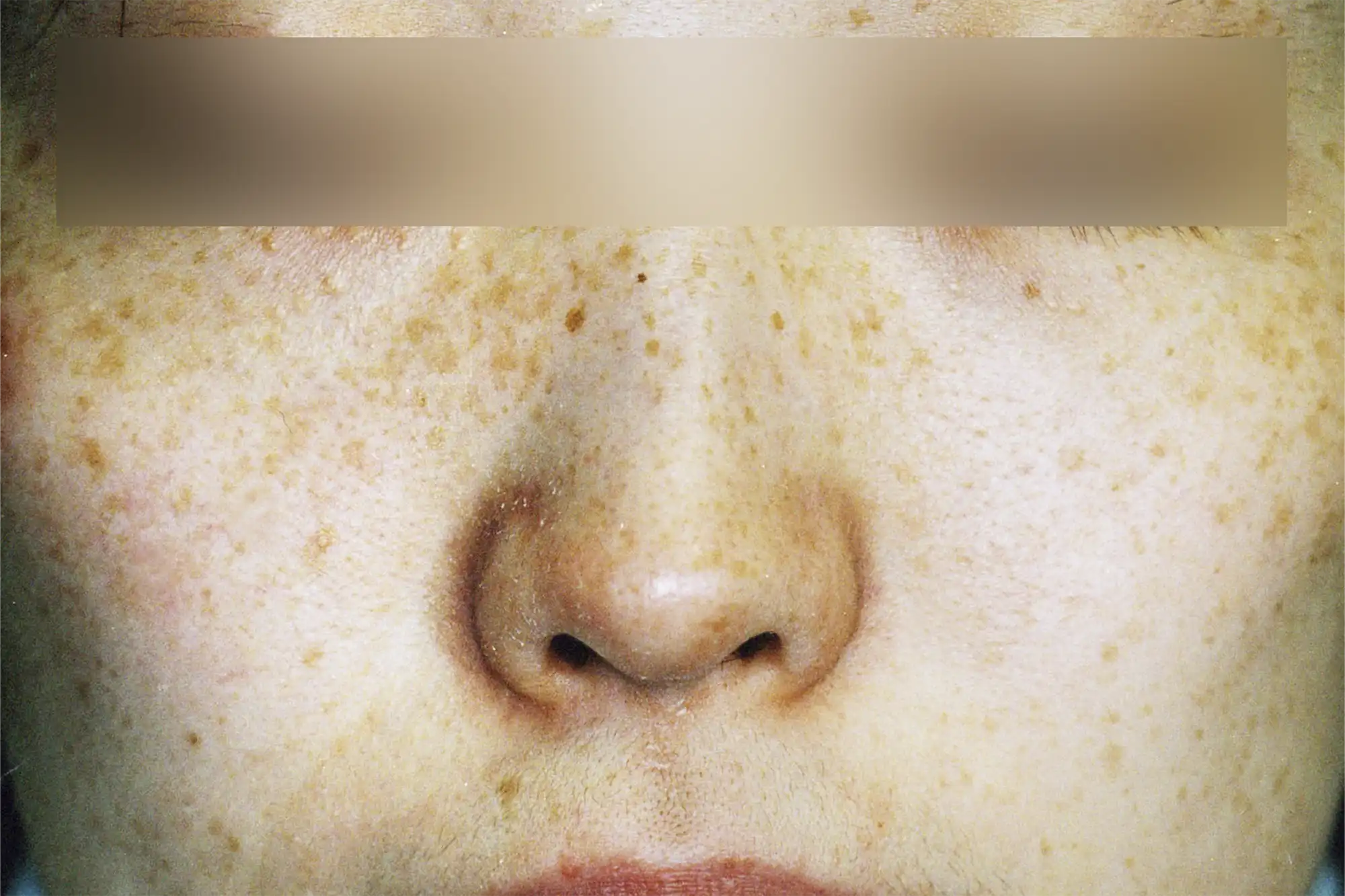 鼻を中心に頬の周り発生することが多いですが、顔だけでなく肩や腕など体にも現れます。雀卵斑は遺伝的な要因が強く、老人性色素斑とは違い幼少時から発生します。紫外線の影響により悪化する場合もあり、春~夏に色調が濃くなる傾向があります。個人差がありますが、思春期頃に目立つようになり、中高年以降に薄くなることが多いと言われています。